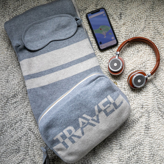 Pink Lemonade Dual Travel Organic Cotton Travel Blanket & Eye Mask Linen Sand