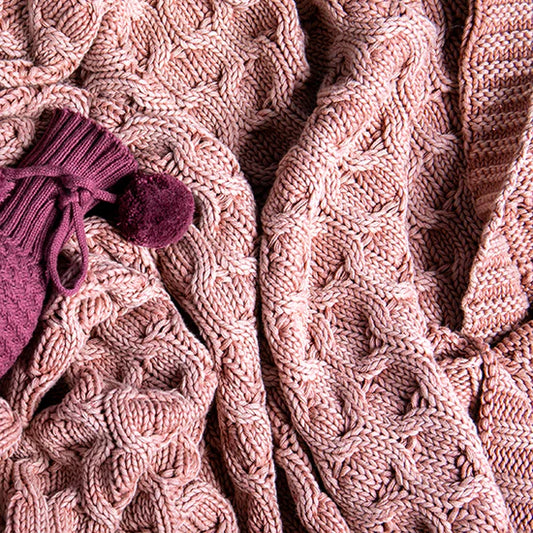 Pink Lemonade Washed Curvy Cotton Knit Throw Blanket Pink