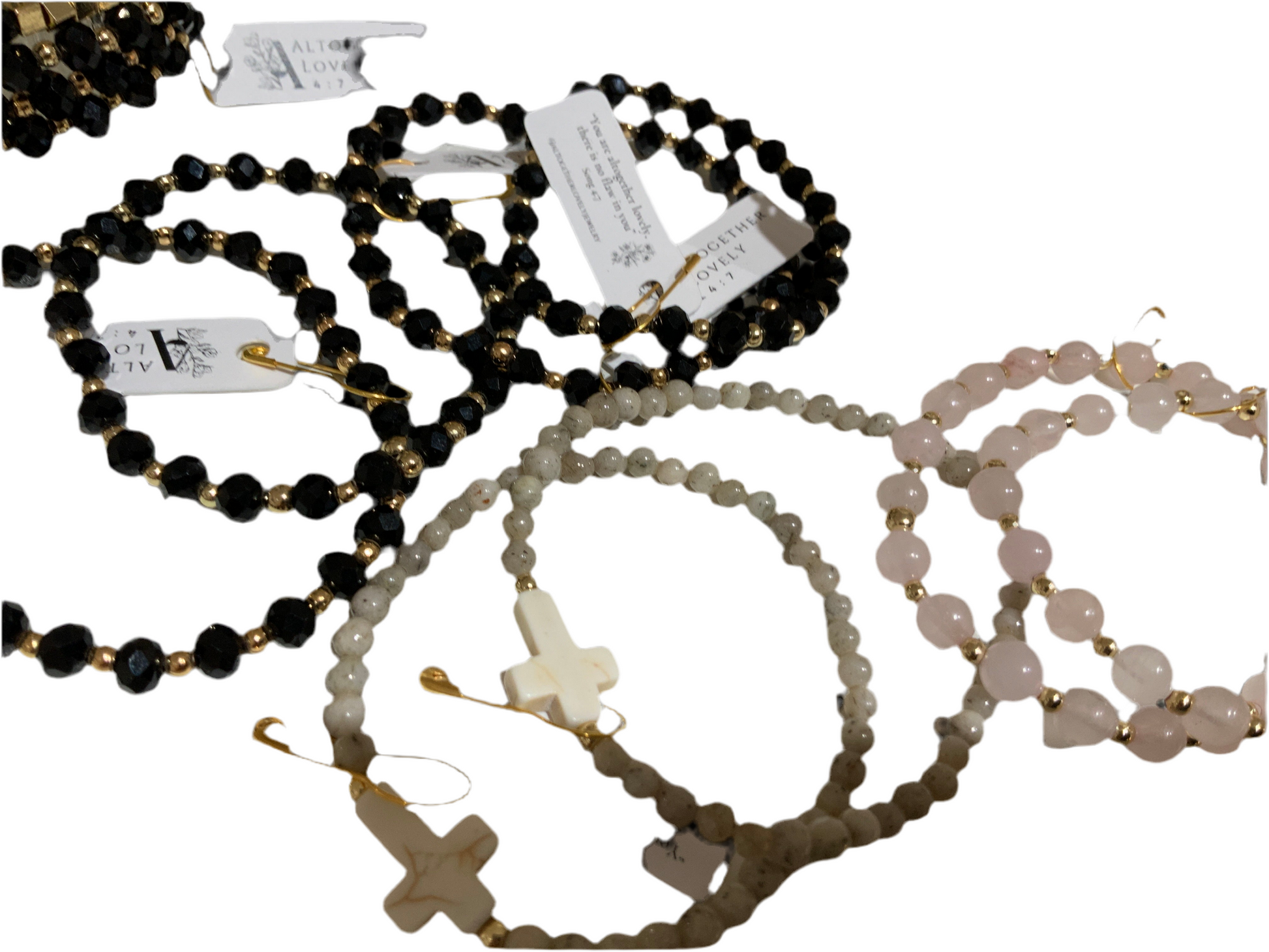 Handmade bracelets with beautiful reminders, “trust’ and ‘loved”.