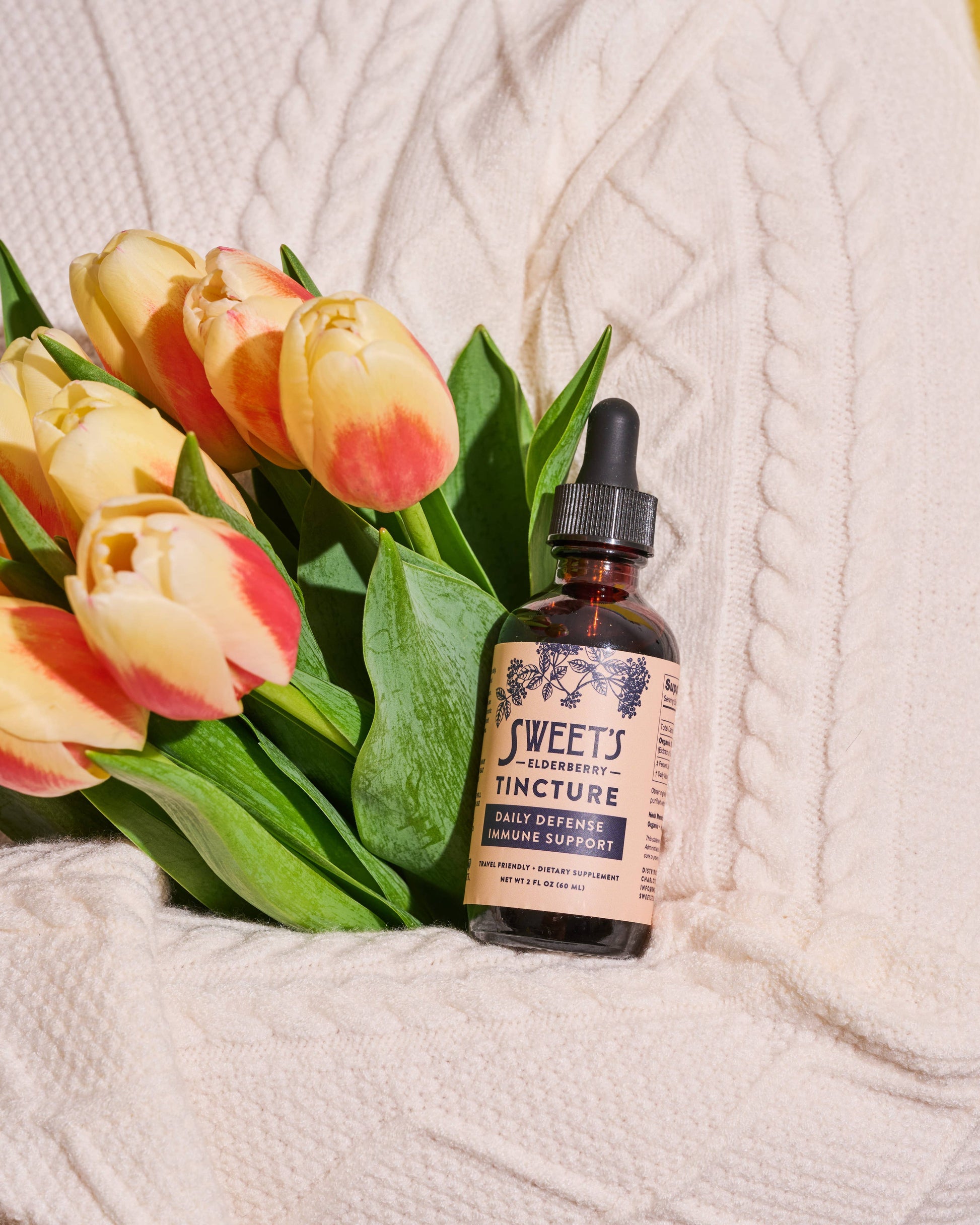 Support a healthy immune system anywhere with Sweet's Daily Defense - a no-fuss, unsweetened, tasty elderberry tincture for the entire family!