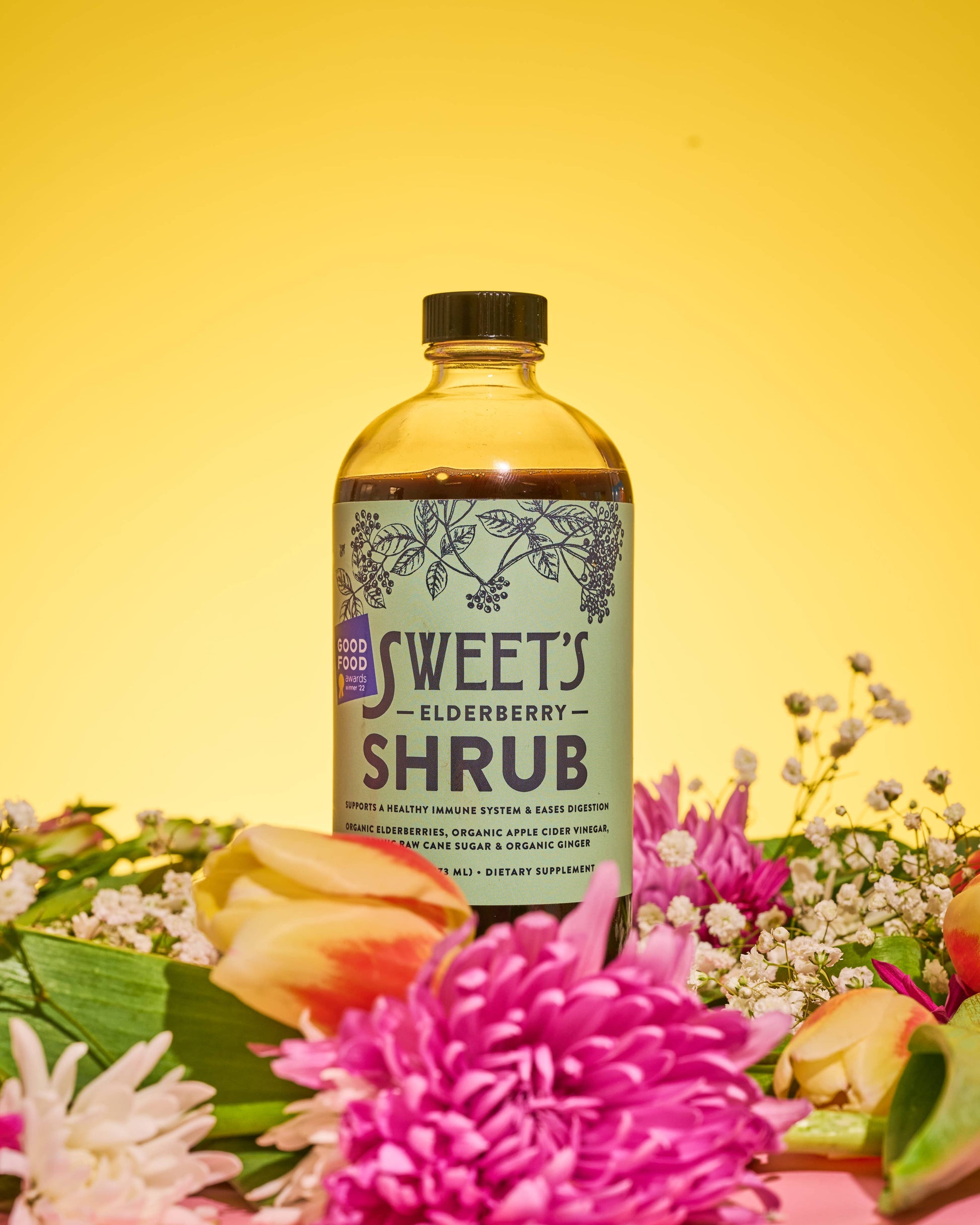 Sweet's Elderberry Shrub supports healthy digestion and immune function.  Provides 1442 mg of elderberry per tablespoon.