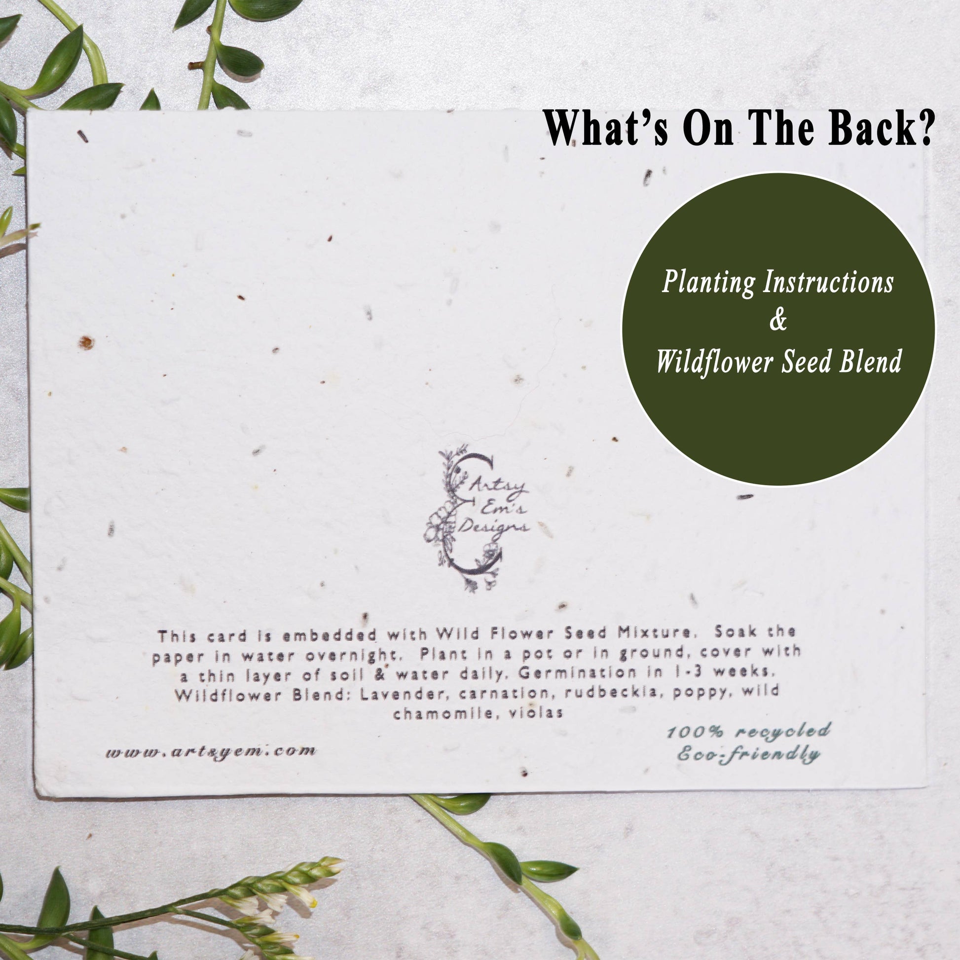 - On the back of each card, there are instructions on how to plant the card for beautiful blooms!